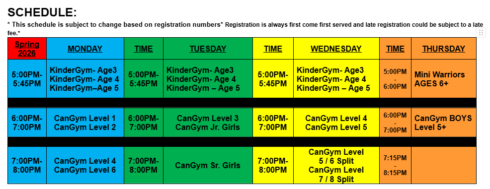 Spring Session will start April 6th/2026 and run for 10 weeks.